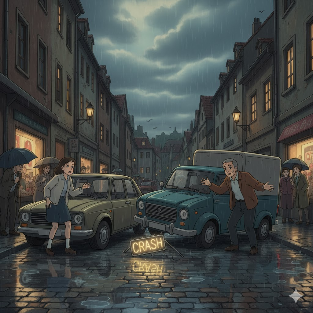 - (트럭이 벽에 충돌했다.)