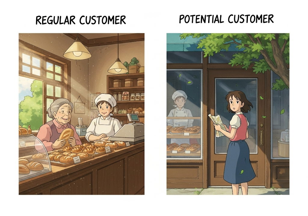 - *'regular customer'**는 이미 확보된 고객을, **'potential customer'**는 아직 확보하지 못한 미래의 고객을 나타냅니다. 이 두 그룹은 기업의 성장 전략에서 다른 방식으로 접근해야 합니다.