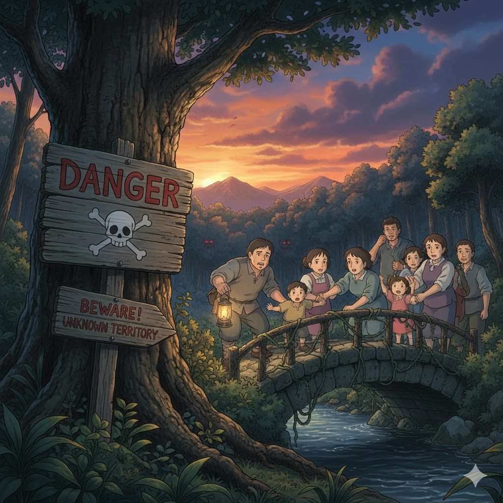 해석: 마을 사람들은 불어나는 홍수로 인해 극심한 위험에 처했다.
