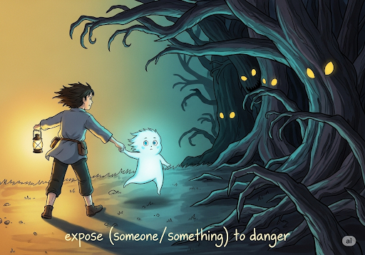 expose (someone / something) to danger [ɪkˈspoʊz ˈsʌmwʌn / ˈsʌmθɪŋ tuː ˈdeɪndʒər]