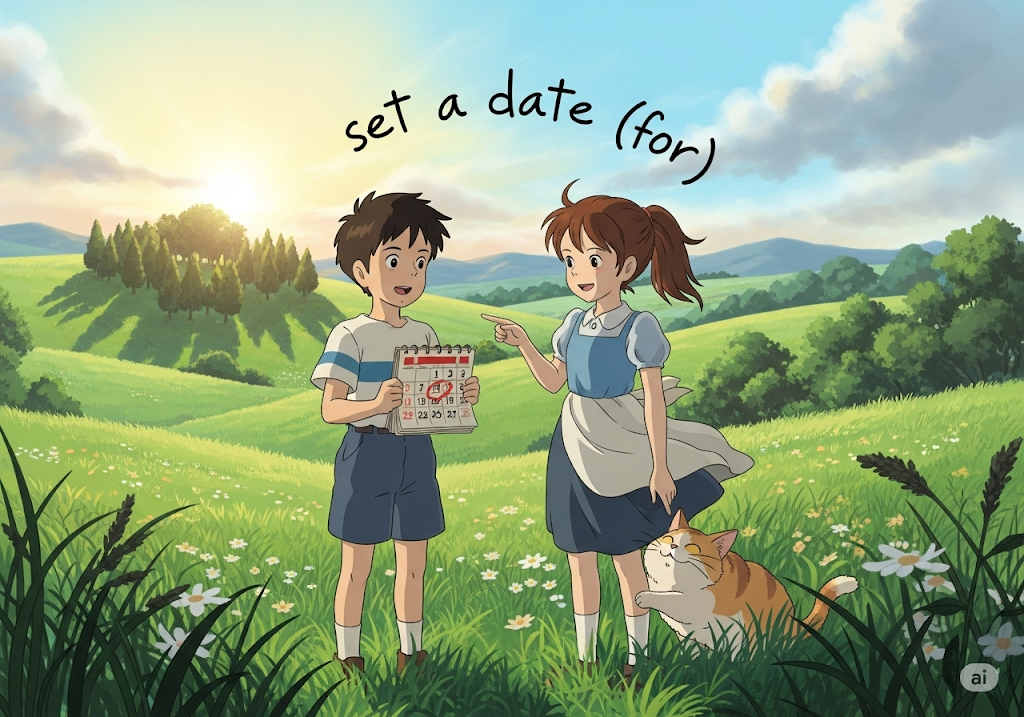 - 뜻: (~의) 날짜를 정하다, 잡다