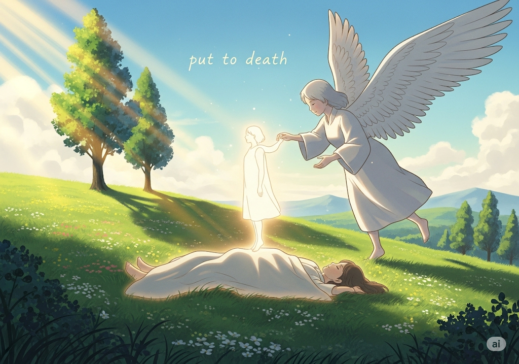 - 뜻: 죽음을 맞이하다, 죽음에 직면하다