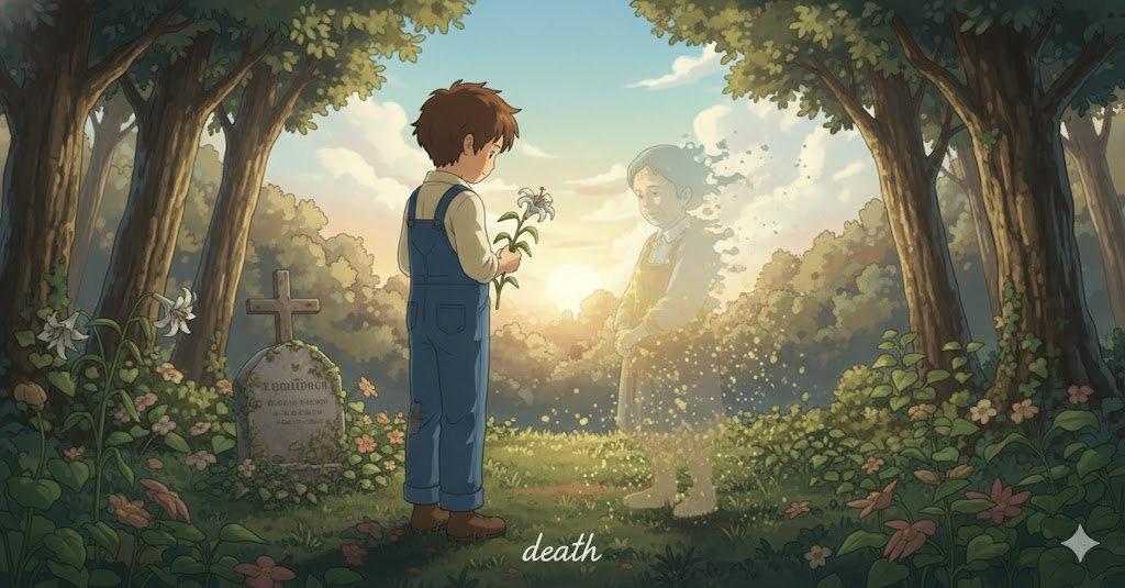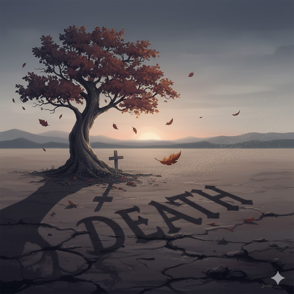 고대 게르만어 계열에서 유래한 dauþuz에서 시작 → 고대 영어 dēaþ를 거쳐 현대 영어 death로 발전 → 이 단어는 원래 **'생명의 종결'**을 의미했음 → 이 의미가 현대 영어에서 '생명체의 생물학적 기능이 멈추는 상태' (죽음, 사망) 명사로 굳어졌어요. 나아가 '사물이나 추상적인 개념의 끝, 파괴, 또는 소멸' (사멸, 종말)의 의미를 가지게 되었어요. 즉, **'생명 또는 존재의 마지막 상태, 혹은 어떤 것의 최종적인 끝'**을 나타내는 핵심 단어예요.