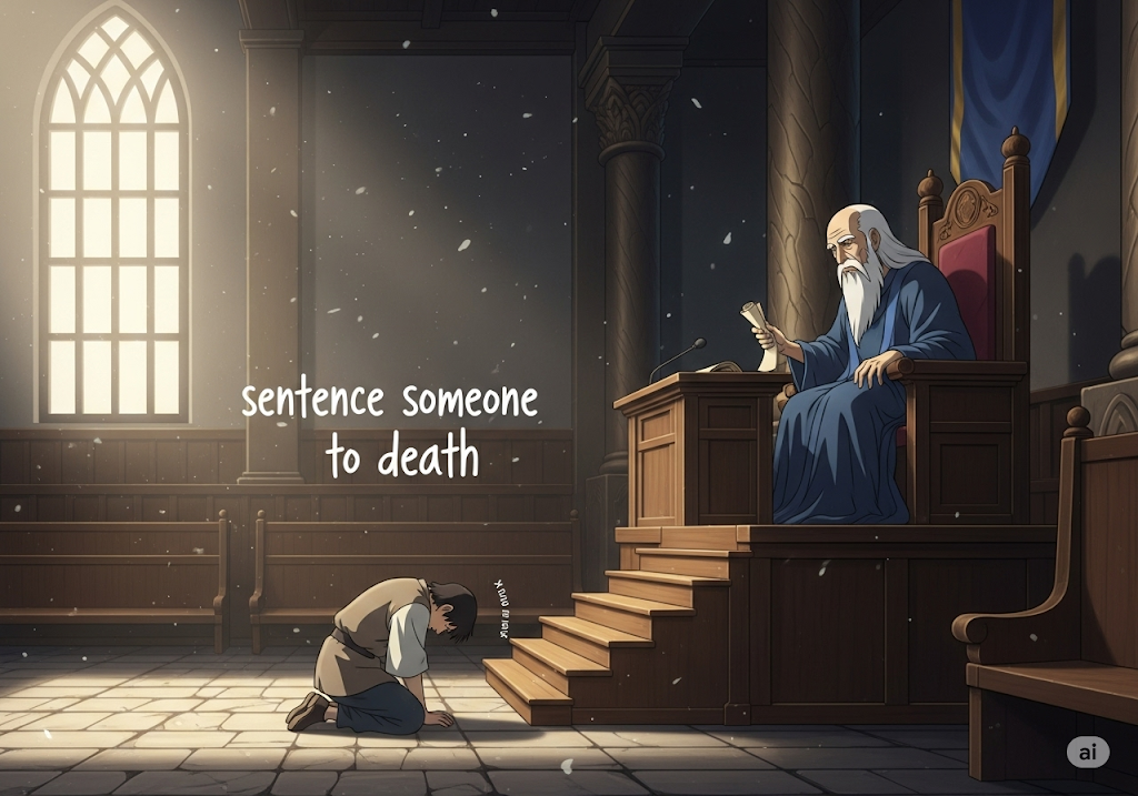 - *'sentence someone to death'**는 법적 절차에 따라 사형이 확정되는 과정을 정확하게 표현합니다. put to death와는 달리, 판결 그 자체를 의미합니다.