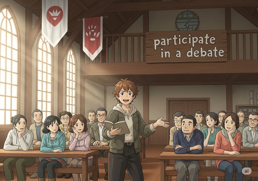 특정한 주제(subject)에 대해 서로 다른 의견(opinion)을 가진 사람들이 논리적으로 자신의 주장을 펼치고 반박하는 공식적인 토론 과정을 의미합니다. 논쟁이나 논의(discussion)와 달리, 상대방의 주장에 대해 반론을 제기하며 승패를 겨루는 경쟁적이고 격식 있는 뉘앙스를 강조합니다.
