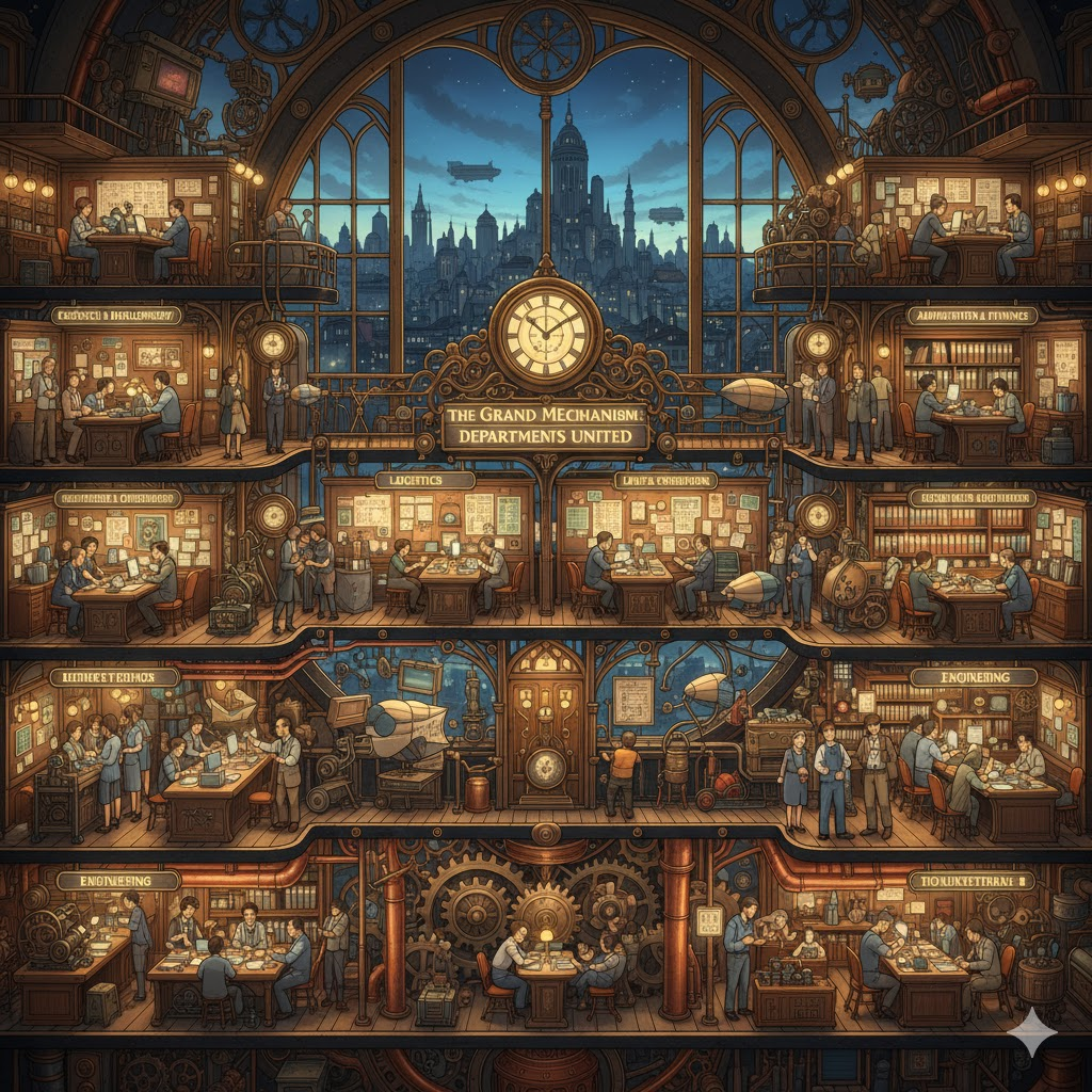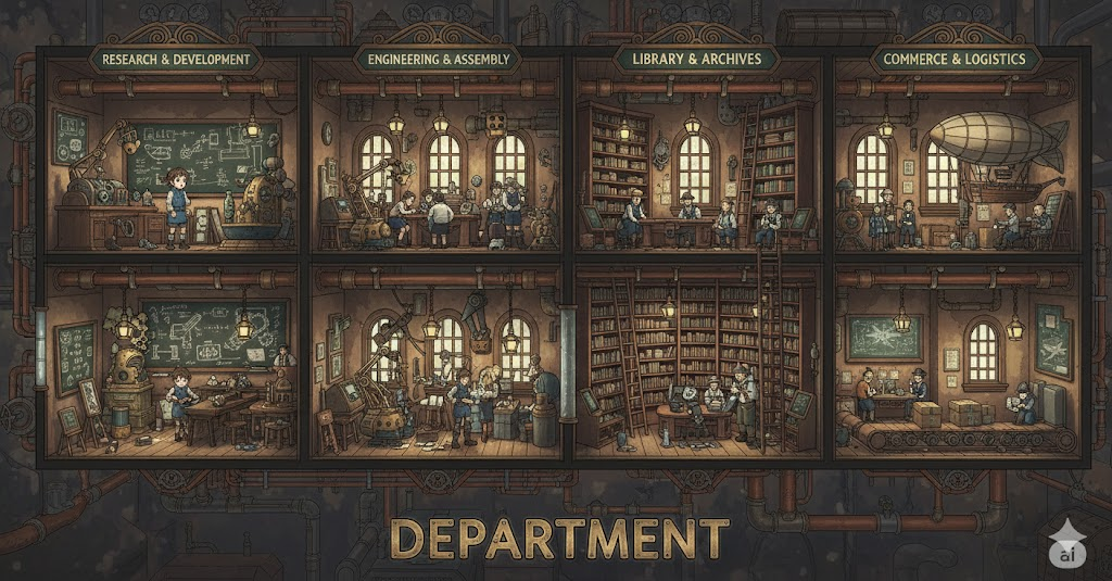 회사, 대학, 정부 등 큰 조직을 구성하는 특정 기능을 가진 단위를 의미합니다. 업무나 학문 분야에 따라 나뉜 **'부서'**나 **'학과'**를 뜻하며, 백화점에서는 특정 상품을 판매하는 **'매장'**을 의미하기도 합니다. 핵심은 **'분류되고 특화된 구획'**입니다.