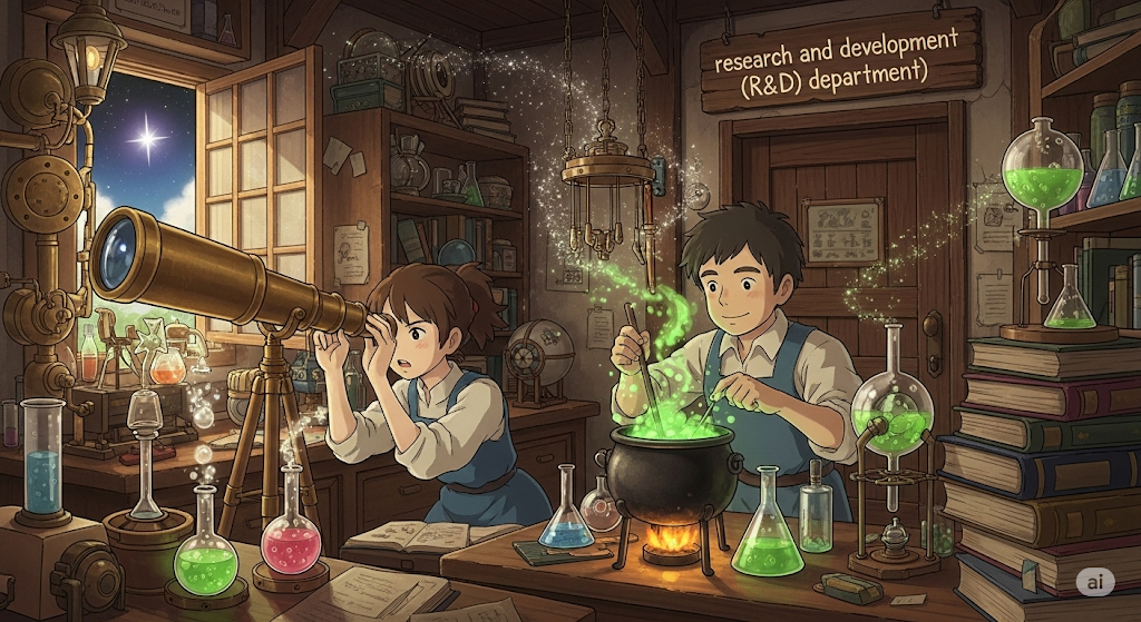 - (연구개발부는 새로운 프로젝트를 진행 중이다.)