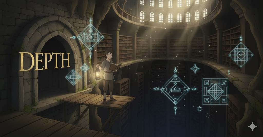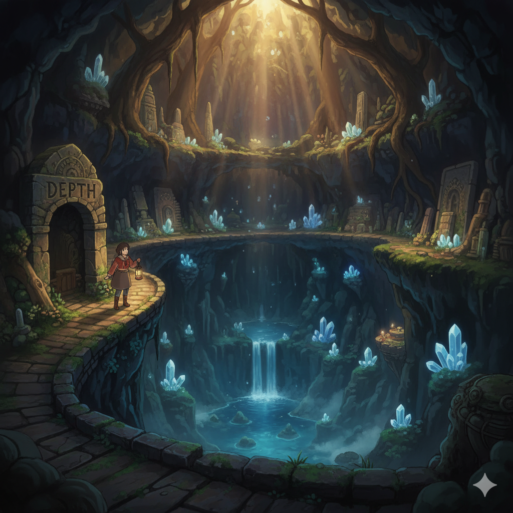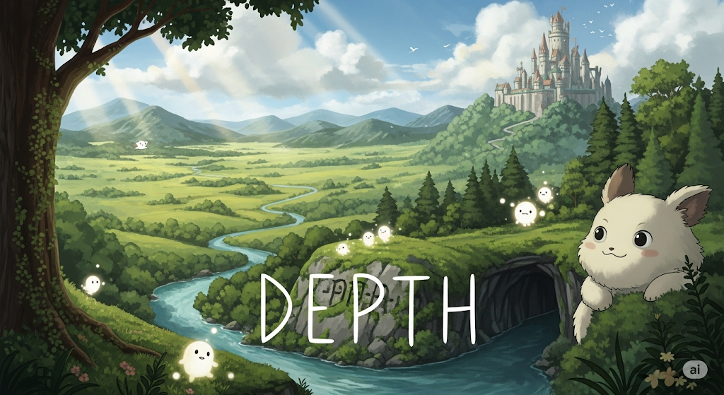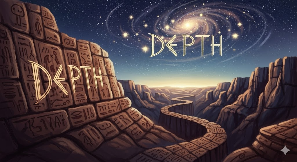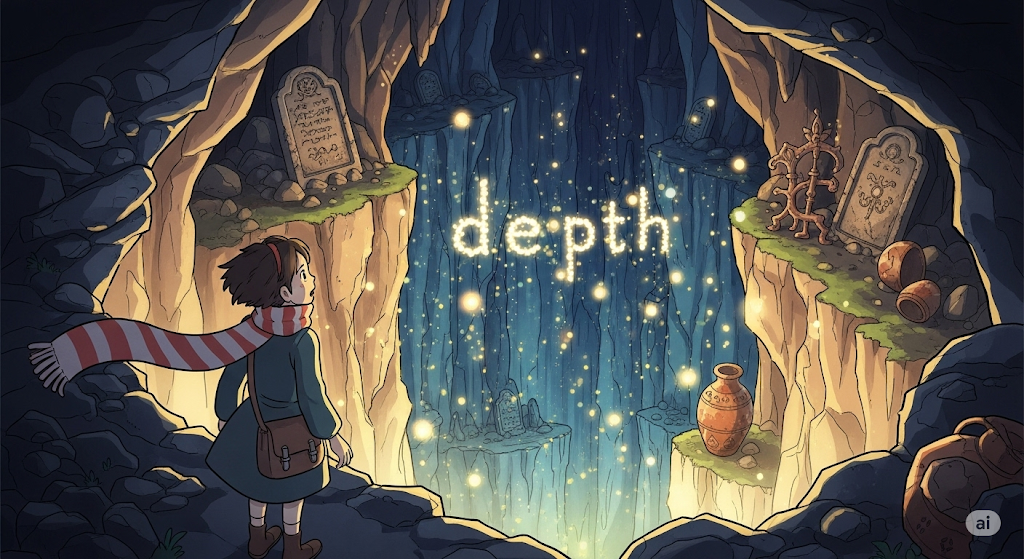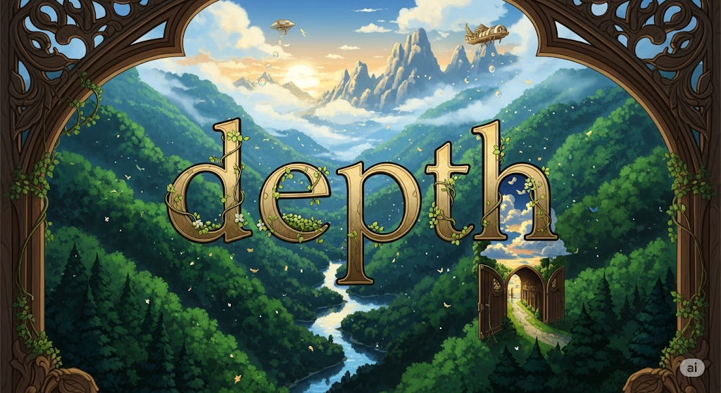 고대 영어 dēop ("깊은")에서 유래한 명사형 → 고대 영어 dīepe를 거쳐 현대 영어 depth로 발전 → 원래 **'아래로 향하는 거리'**를 의미했음 → 이 의미가 현대 영어에서 '물리적인 아래 방향의 거리나 물체의 두께' (깊이) 명사로 굳어졌어요. 나아가 '사고나 감정의 진지함이나 복잡성' (심도, 진지함) 그리고 '어떤 것의 가장 심한 상태' (절정, 한가운데)의 의미를 가지게 되었어요. 즉, **'물리적/추상적인 깊이와 중요성'**을 나타내는 핵심 단어예요.