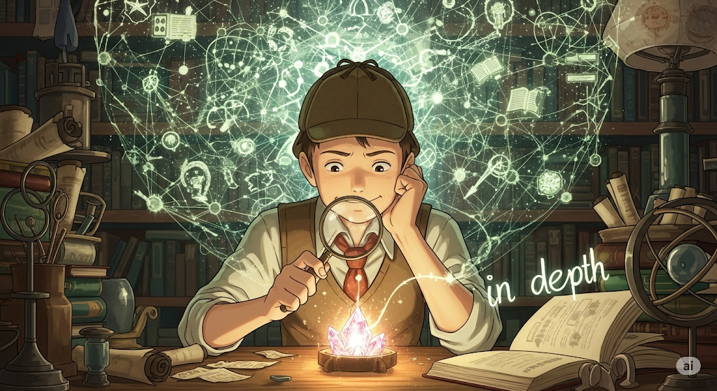 '추상적'인 개념(인간 본성(human nature), 고통(suffering), 지식(knowledge) 등)의 '가장 깊은', '가장 어두운', '가장 심오한' 부분(depths)까지 '철저하게 **탐구'**하는 행위를 의미합니다. 이는 '심층적인 **탐험'**과 '진실(truth) **발견'**에 초점이 맞춰져 있습니다.