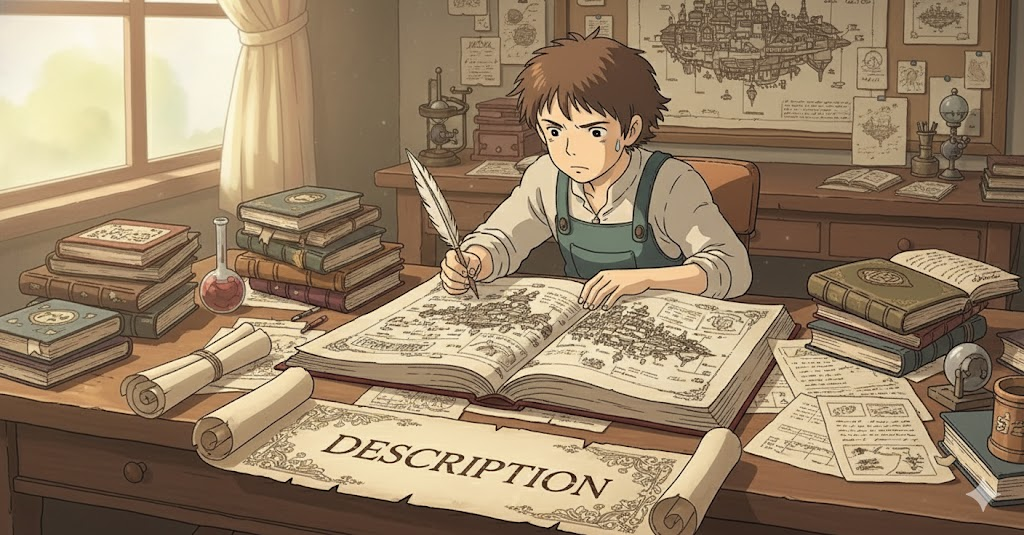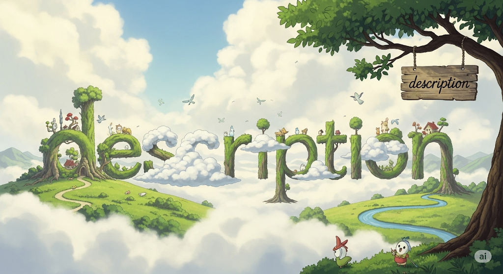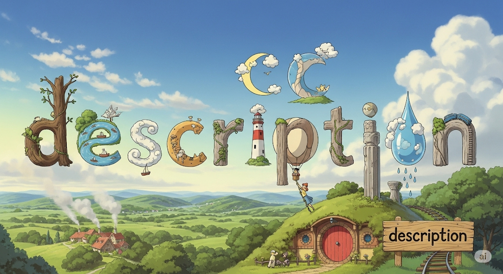 어떤 사물, 사람, 장소, 또는 사건의 특징을 말로써 자세하게 서술하는 행위나 그 서술된 내용 자체를 의미합니다. '설명(explanation)'과는 달리, 상대방이 머릿속에 그림을 그릴 수 있을 정도로 구체적인 특성을 묘사하는 것에 초점이 맞춰져 있습니다.