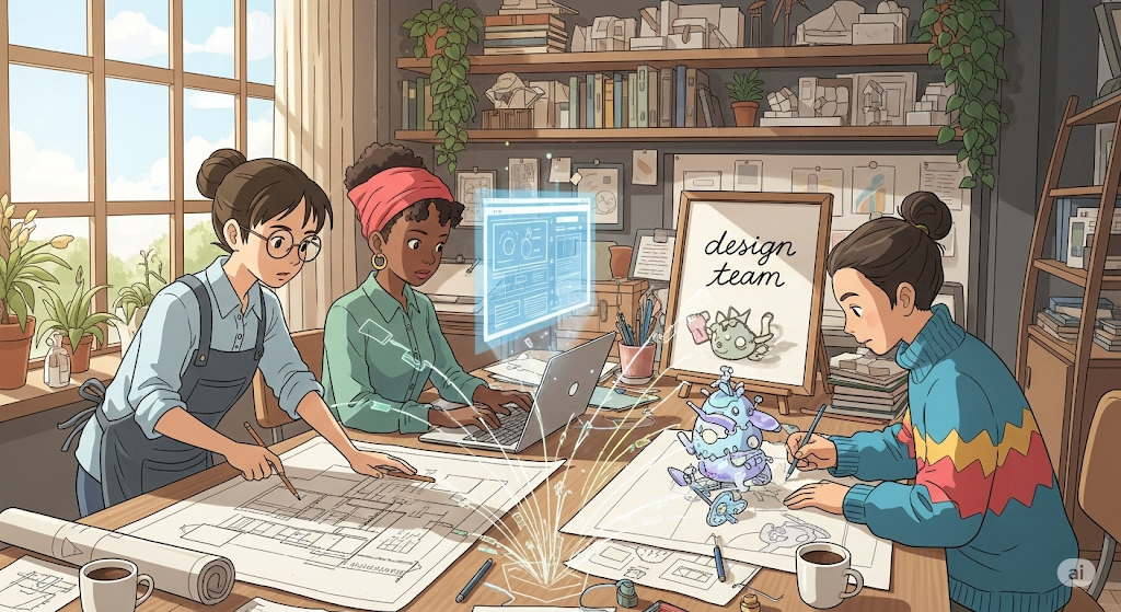 디자인 팀. 디자인 프로젝트를 수행하기 위해 함께 일하는 사람들의 그룹.