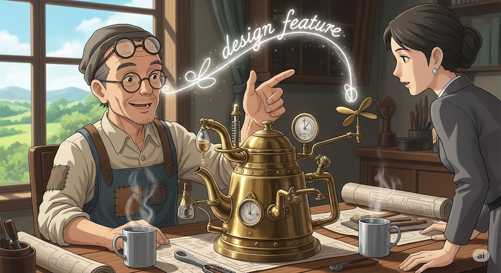 | design | 디자인, 설계 | 명사로, '특징'이 '속한' '영역'을 나타냄. | feature와 결합하여 '디자인'에 '포함된' '특징'임을 명확히 함. |