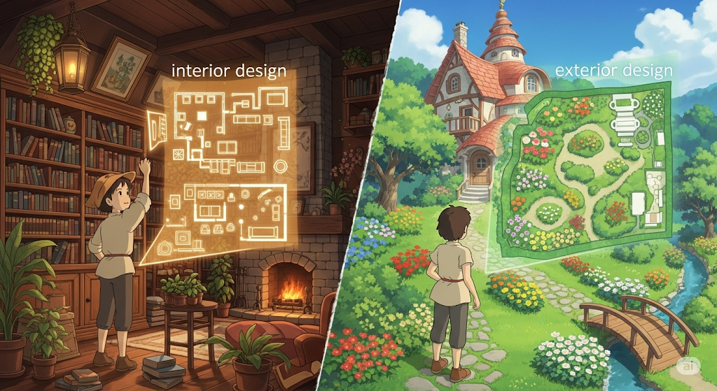 - The interior design of the house is beautiful. (그 집의 실내 디자인이 아름답다.)
