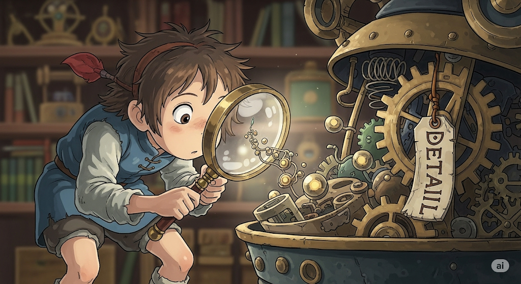 '작고', '중요한' '세부 사항'(detail)을 '놓치지 않고', '신중하게 처리'하는 '개인의 성향'(character)이나 **'능력'**을 의미합니다. 이는 '품질'(quality)과 '정확성'(accuracy)을 유지하는 데 필수적인 자질입니다.