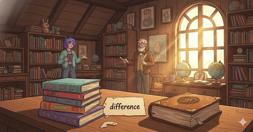 두 가지 이상의 사물, 사람, 또는 개념이 서로 같지 않고 구별되는 특징을 의미합니다. '비교'를 통해 드러나는 **'다름'**에 초점이 맞춰져 있으며, **'변화'**나 **'불일치'**를 나타내는 포괄적인 개념입니다.