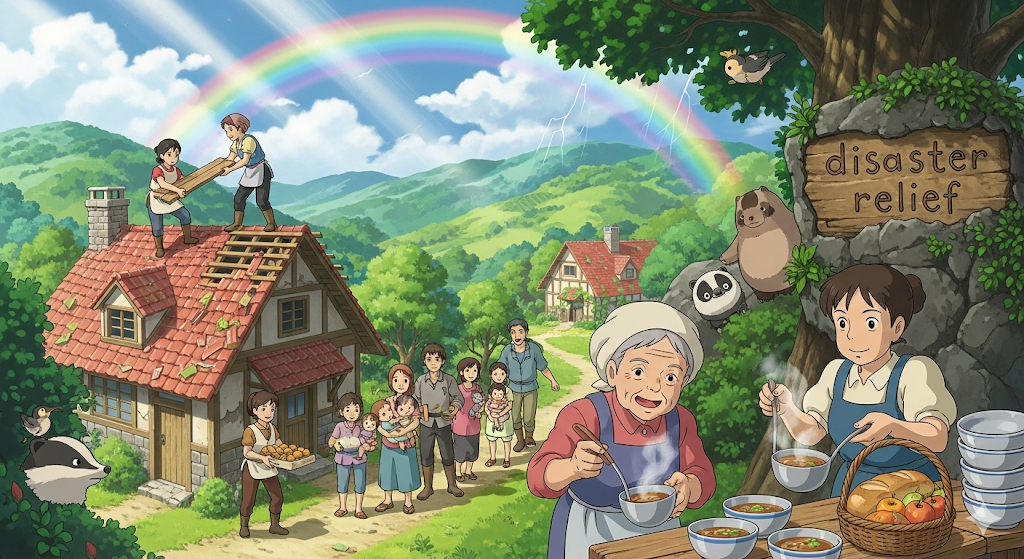 - 예문: Volunteers provided disaster relief to the victims.