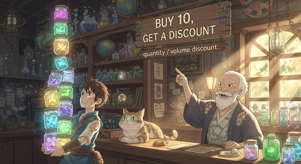 - 예문: We offer a quantity discount for bulk orders.