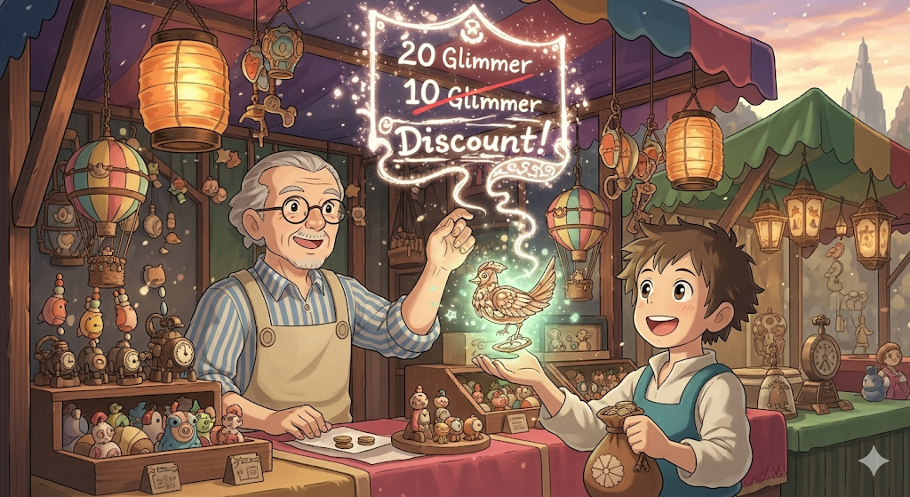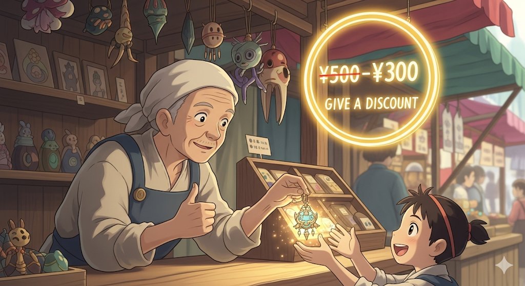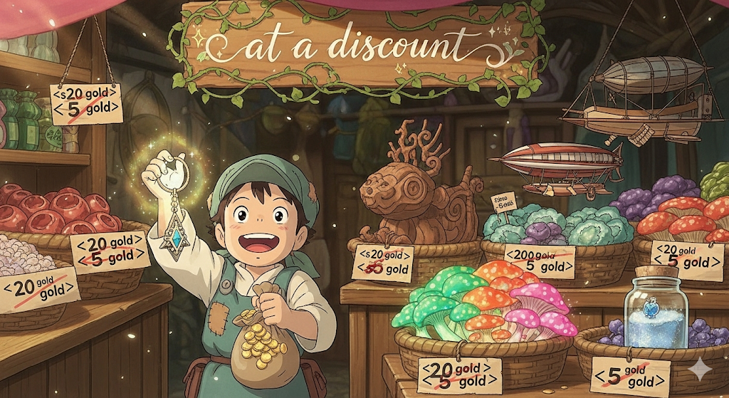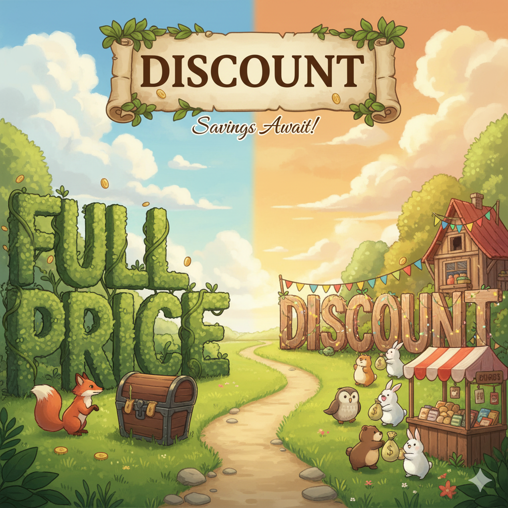 어떤 물건(item)이나 서비스가 '정가'(list price)보다 '낮은', '할인된 가격'(discount price)으로 '판매'(sell)되거나 '이용'될 수 있는 상태를 의미합니다. 이는 '저렴하게 구매'할 수 있는 '기회'(chance)에 초점이 맞춰져 있습니다.
