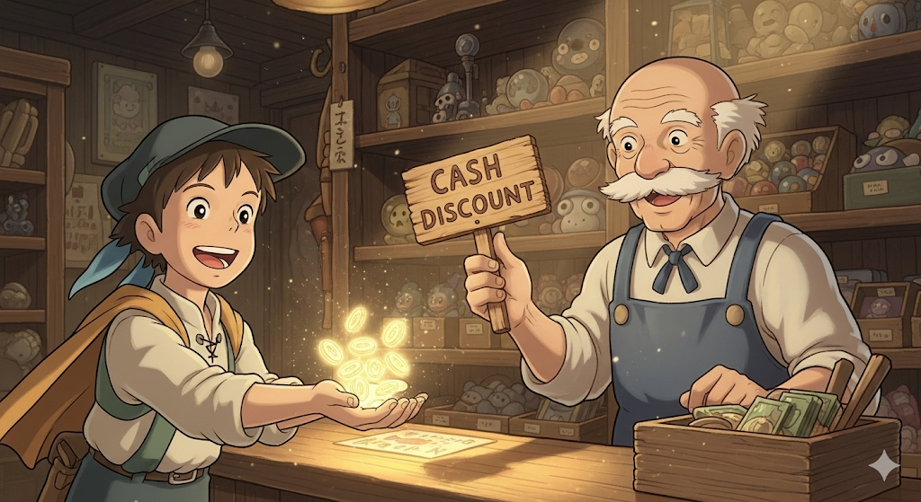 현금 할인. 현금으로 지불할 때 제공되는 할인.