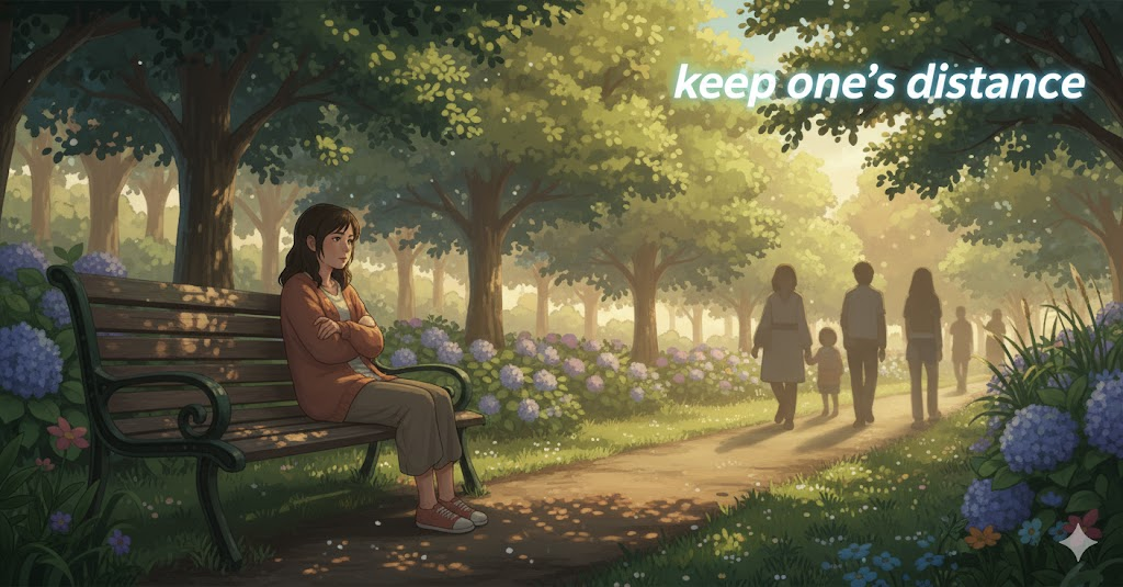 - 뜻: (~와) 거리를 유지하다
