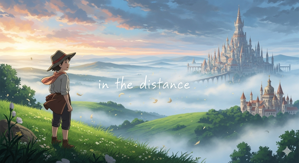 - *'in the distance'**는 주로 시각적 또는 청각적으로 감지되는 대상을 묘사할 때 사용됩니다.
