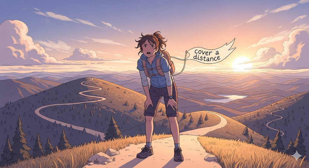 | cover | 덮다, 이동하다 | 동사로, '어떤' '거리'를 '통과'하는 행위. | a distance라는 '거리'를 '이동'하여 '마치는' 행위를 나타냄. |