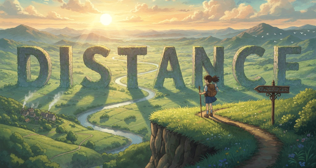 두 지점, 사물, 또는 사람 사이의 물리적인 간격을 의미합니다. 단순히 '길이(length)'를 뜻하는 것을 넘어, 시간적인 간격이나, 사람들 사이의 **'정서적인 거리'**와 같이 추상적인 의미로도 사용됩니다. '떨어져 있음'이라는 개념이 핵심입니다.