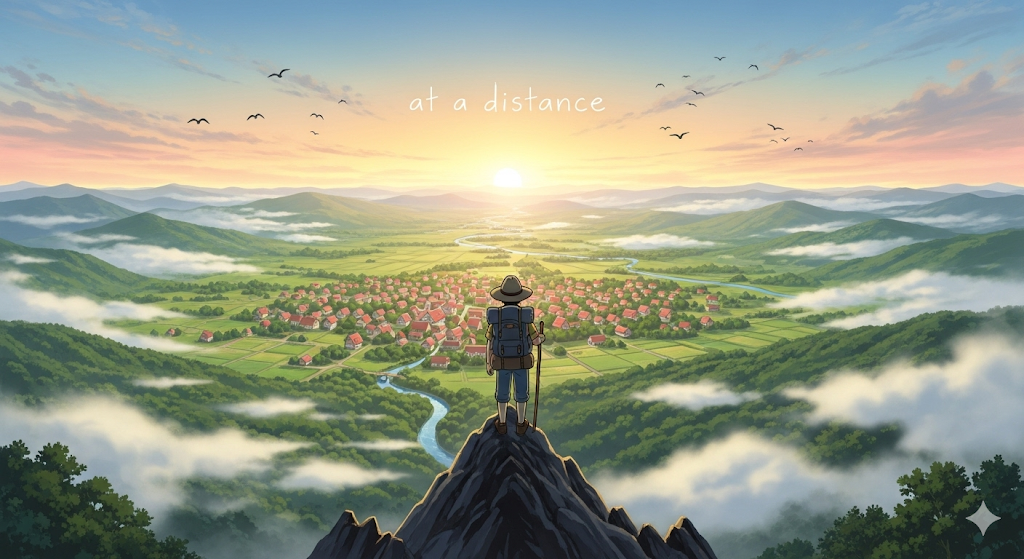 (관용구) 멀리서, 멀리 떨어진 곳에