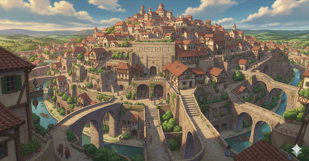 라틴어 districtus ("징발된, 강제된")에서 유래 → distringere ("흩어지게 하다, 떼어내다, 강제하다") → dis- ("떨어져") + stringere ("묶다, 조이다") → 중세 라틴어 districtus (법적 관할권을 가진 지역)를 거쳐 구 프랑스어 district를 통해 영어로 유입 → 원래 **'특정 관할권이나 통제 하에 있는 지역'**을 의미했음 → 이 의미가 현대 영어에서 '행정, 투표, 상업 등 특정 목적을 위해 지정된 지리적 영역' (지구, 구역) 명사로 굳어졌어요. 이는 도시의 특정 부분일 수도 있고, 더 넓은 농촌 지역의 일부일 수도 있어요. 즉, **'특정 기능이나 목적에 따라 구분된 지역'**을 나타내는 핵심 단어예요.
