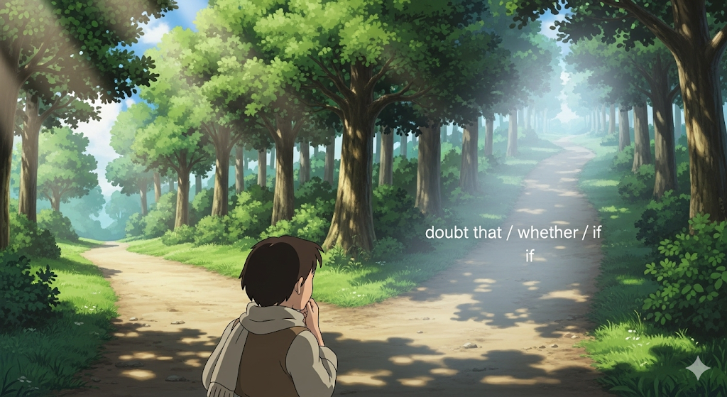 | that / whether / if | ~라는 것을 / ~인지 아닌지 | 접속사로, '의심'의 '내용'을 이끄는 역할. | '의심'하는 '구체적인' '내용'을 '전달'함. |