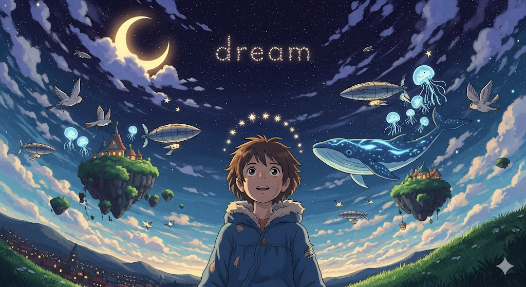 잠자는 동안 경험하는 이미지(image), 생각(thought), 또는 감정(emotion)의 연속체를 의미합니다. 물리적인 꿈 외에, 간절히 바라는 희망(hope)이나 목표(goal)를 비유적으로 나타낼 때도 사용됩니다. 핵심은 현실(reality)과는 다른 상상의 세계 또는 열망하는 미래입니다.