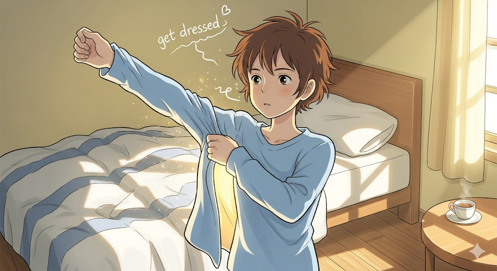 뉘앙스: 'get dressed'는 옷을 입는 행위를 나타냅니다. 이는 주로 잠옷이나 편안한 옷에서 외출복으로 갈아입는 과정을 의미합니다. 일상적인 준비 과정의 일부로, 하루를 시작하거나 특정 활동을 위해 옷을 입는 행위를 묘사하는 뉘앙스를 담고 있습니다.