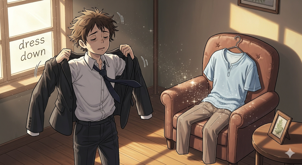 예문: He was just wearing a casual outfit for the weekend.