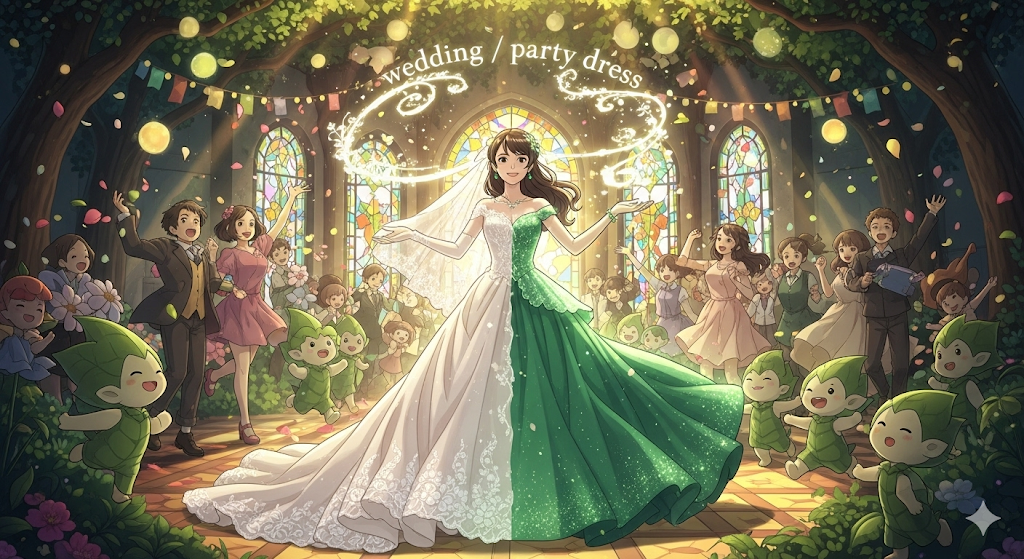 - 뜻: 웨딩드레스/파티 드레스(행사용 옷)