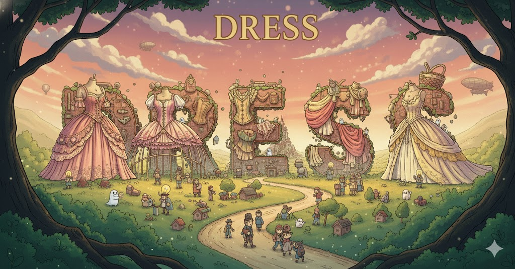 라틴어 directiare ("똑바로 하다, 준비하다")에서 유래 → 구 프랑스어 dresser ("똑바로 세우다, 준비하다, 정돈하다")를 거쳐 영어로 유입 → 원래 **'곧게 세우다, 준비하다, 정돈하다'**는 광범위한 의미였음 → 이 의미가 현대 영어에서 '몸을 정돈하여 옷을 입는 행위' (옷을 입다) 동사로 발전했고, 그 결과물인 '여성용 의복' (드레스, 원피스) 명사로 굳어졌어요. 나아가 '특정 목적을 위한 옷차림' (의복)의 의미와, '상처를 정돈하고 치료하는 행위' (치료하다), '음식을 먹기 좋게 정돈하는 행위' (준비하다, 양념하다) 등의 의미를 가지게 되었어요. 즉, **'무엇인가를 정돈하고 준비하는 행위 또는 그 결과물'**을 나타내는 핵심 단어예요.