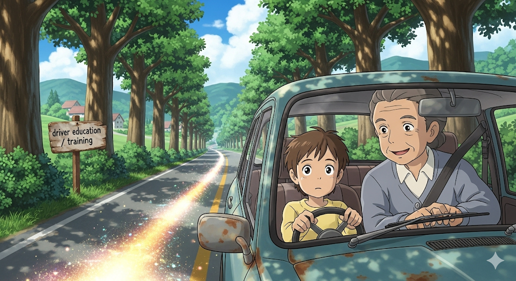 새로운 운전자(driver)가 '안전한'(safe) 운전 기술(skill)과 '교통 법규'(traffic laws)를 '배우고', '면허'(license)를 취득하도록 준비시키는 '공식적인 교육'(instruction) 과정을 의미합니다. 이는 '실질적인 기술 **습득'**에 초점이 맞춰져 있습니다.
