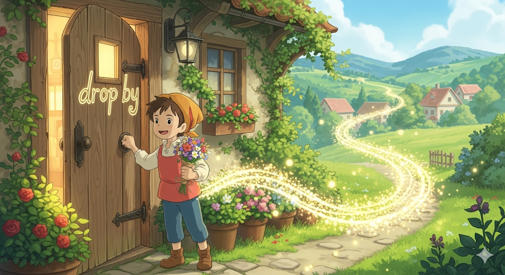 | drop | 떨어뜨리다, 보내다 | 동사로, '간단한' '메시지'를 '보내는' 행위. | a line이라는 '짧은' '글'을 '보내는' '행위'를 나타냄. |