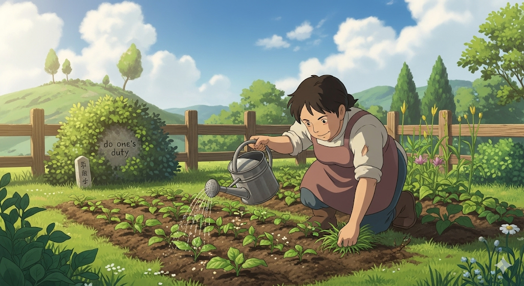 뉘앙스: 자신에게 맡겨진 의무나 책임을 성실하게 수행하는 것을 의미합니다. 때로는 힘들거나 어려운 일일지라도, 마땅히 해야 할 일을 충실히 해내는 느낌을 가집니다.