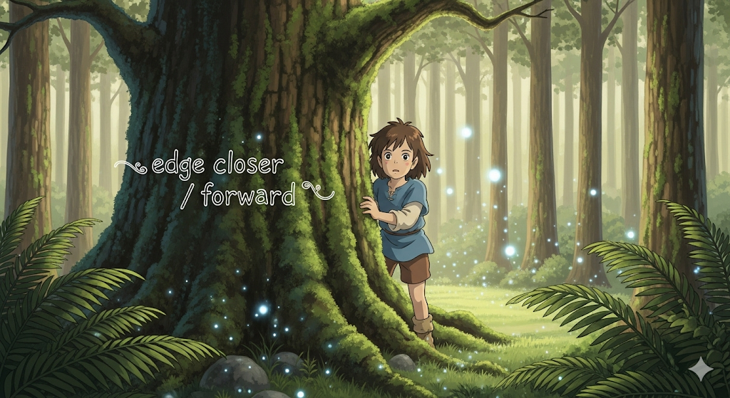 | closer / forward | 더 가깝게 / 앞으로 | 부사로, '접근'이나 '전진'의 '개념'. | '명시된' '행위'가 '천천히' '접근'함을 구체화. |