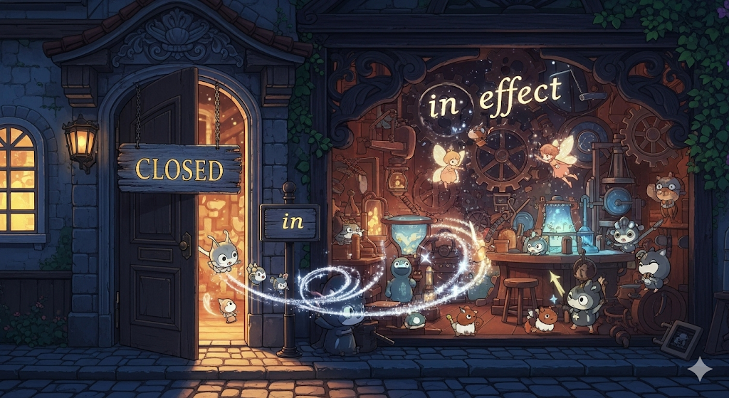 - *'in effect'**는 공식적인 규정과 실제 상황 사이의 차이를 설명할 때 유용합니다.