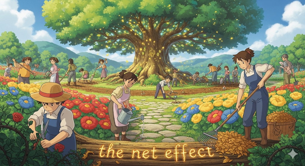 - All the small changes, when added together, have a huge net effect. (모든 작은 변화들이 합쳐지면, 엄청난 순효과를 가져온다.)