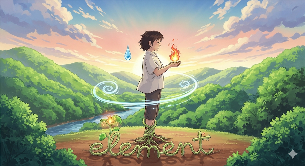 라틴어 elementum ("기초 원리, 문자")에서 유래 → 아마도 'L M N'과 같은 문자의 발음에서 왔다는 설과 '원시적인 형태'를 의미했다는 설이 있음 → 중세 라틴어를 거쳐 구 프랑스어 element를 통해 영어로 유입 → 즉, 원래 **'사물의 기본 구성 요소나 문자'**를 의미했음 → 이 의미가 현대 영어에서 '어떤 것을 이루는 가장 기본적인 부분' (요소, 성분) 명사로 굳어졌어요. 나아가 '화학적으로 더 이상 분해되지 않는 물질' (원소)의 의미를 가지게 되었고, '날씨와 같은 자연의 기본적인 힘' (복수형), 그리고 '사람이 잘 맞는 환경' (적합한 환경, 본분) 등의 의미로 확장되었어요. 즉, **'어떤 것의 근본적인 구성 부분, 힘, 또는 환경'**을 나타내는 핵심 단어예요.