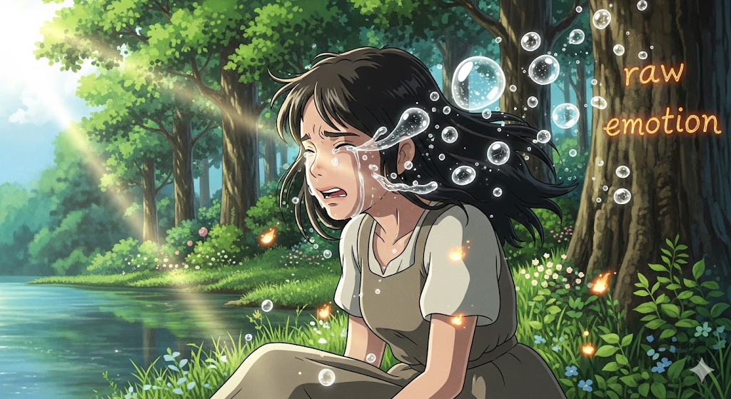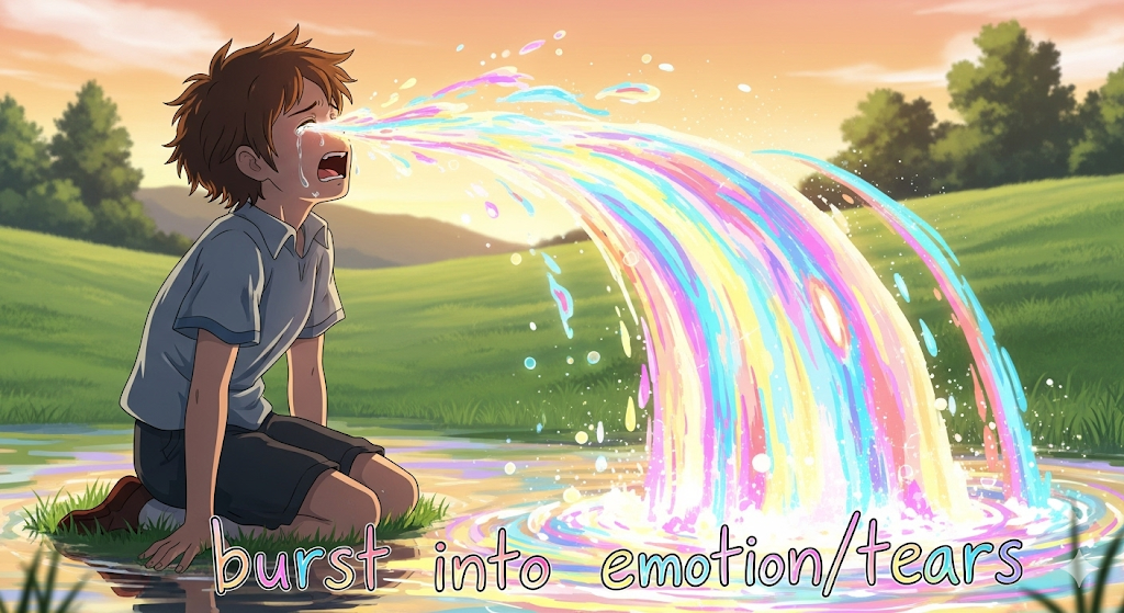 - 해석: 갑자기 감정이 폭발하다 / 눈물을 터뜨리다