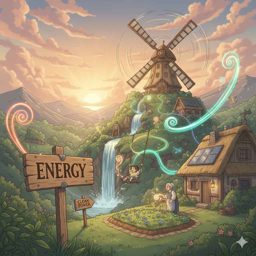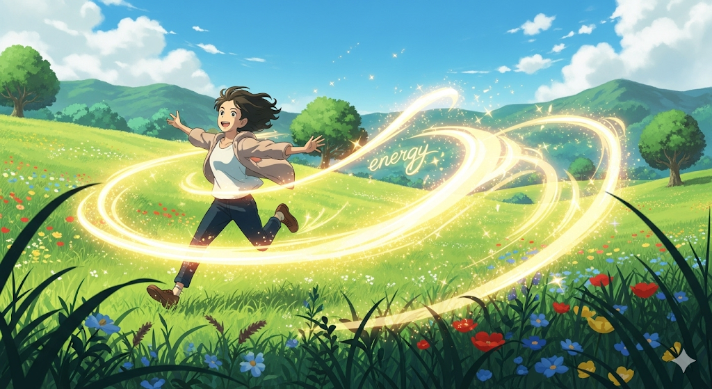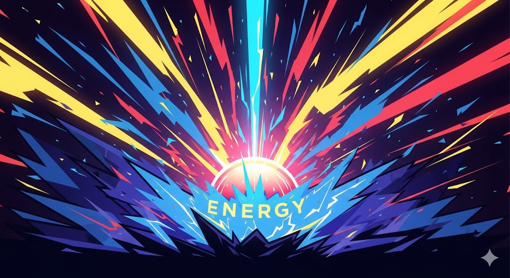 그리스어 energeia ("활동, 작용")에서 유래 → en- ("안에") + ergon ("일") → 즉, 원래 **'안에 있는 힘으로 일하는 것'**을 의미했음 → 17세기부터 '실제적인 활동이나 작용'을 의미하다가, 19세기 과학 혁명과 함께 '물리적인 일을 할 수 있는 능력' (에너지, 힘) 명사로 굳어졌어요.1 나아가 '사람이 활동하거나 움직일 때 나타나는 활기나 기운' (활동력, 활기)의 의미를 가지게 되었어요. 즉, **'일을 하거나 움직이게 하는 능력 또는 사람의 활력'**을 나타내는 핵심 단어예요.