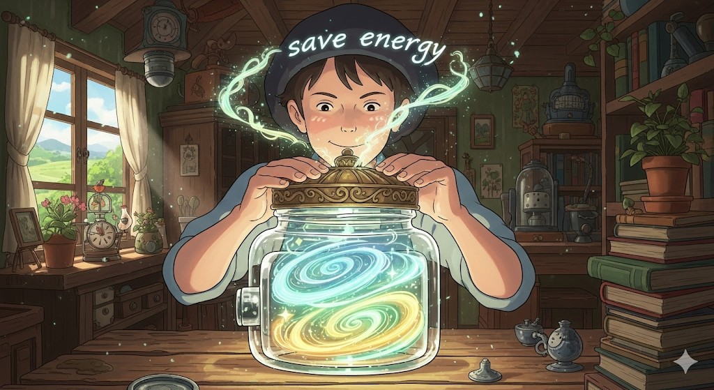 에너지를 절약하다. 에너지를 낭비하지 않고 효율적으로 사용하는 것.