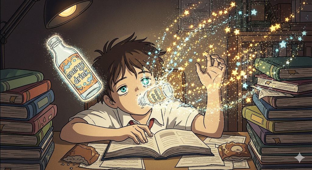 뉘앙스: 'energy drink'는 피로를 이겨내거나 집중력을 높이기 위해 마시는 음료를 의미합니다. 이는 종종 늦은 밤 공부, 장시간의 작업, 또는 힘든 여정 중 지친 상태를 극복하기 위해 사용됩니다. 이는 피로를 물리치고 활력을 얻는 즉각적인 효과를 나타내는 뉘앙스를 담고 있습니다.