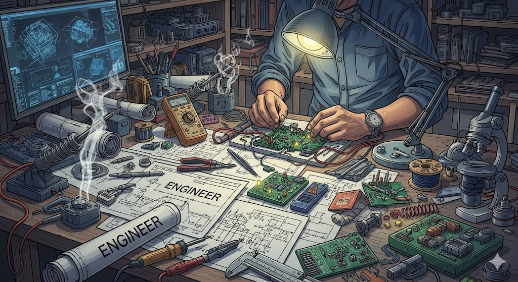 제품, 기계(machine), 또는 시스템의 '기능적' 측면과 '구조적' 측면 모두를 고려하여 '세부 설계'(design)를 '책임지는' 전문가를 의미합니다. 이는 '미적 요소'보다 '실제 작동 원리'(function)와 '효율성'(efficiency) 측면의 설계에 초점이 맞춰져 있습니다.