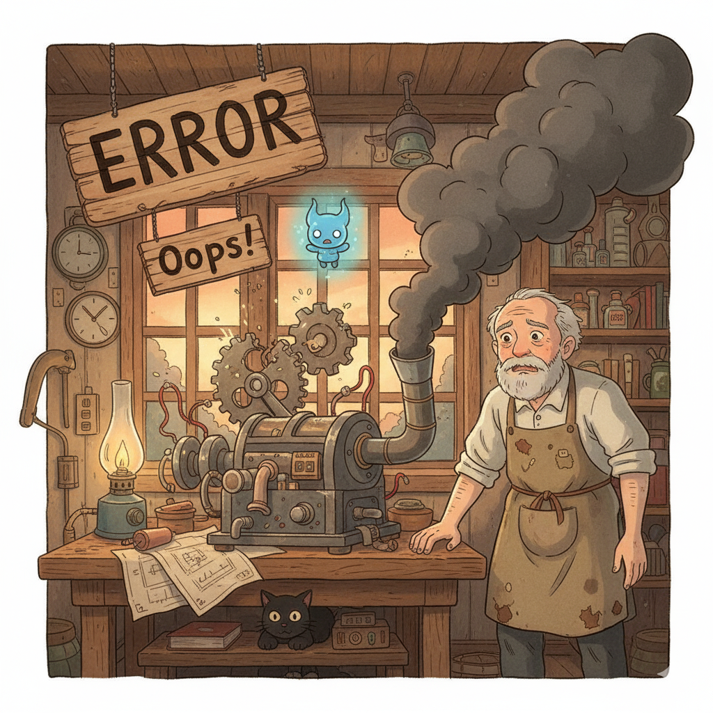 의도하지 않은 실수나 잘못된 판단(poor judgment)으로 인해 발생하는 결함이나 문제(problem)를 의미합니다. '실수(mistake)'와 비슷하지만, 기술적이거나 논리적인 결함에 초점이 맞춰져 있으며, 종종 시스템이나 기계의 오작동과 관련하여 사용됩니다.