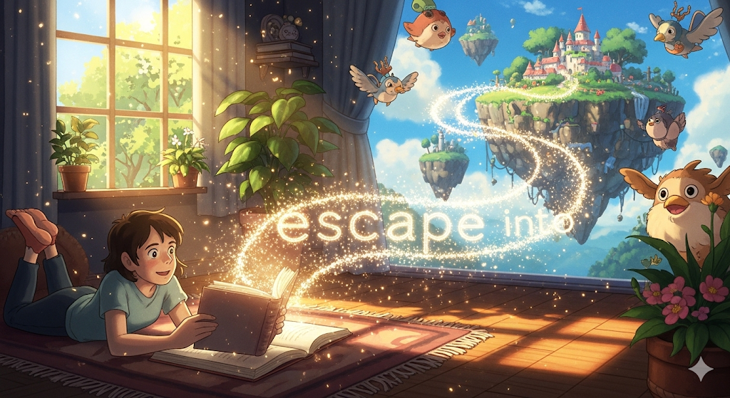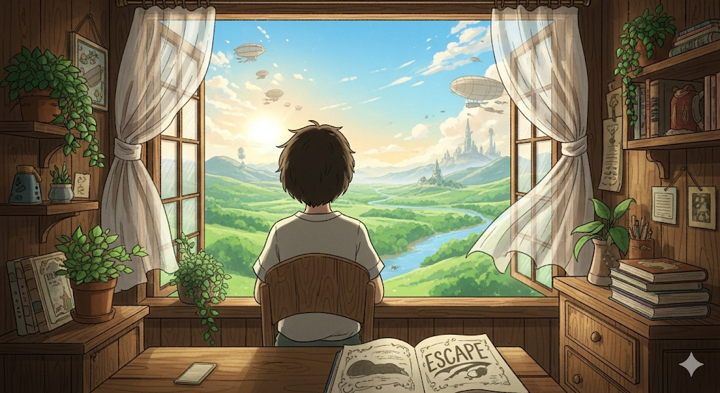 '불쾌'하거나, '힘든' '현실'(reality)의 '문제'(problem)나 '책임'(responsibility)을 '벗어나기'(escape) 위해, '몽상', '오락', 또는 '도피적인 활동'에 '탐닉'하는 행위를 의미합니다. 이는 '일시적인 **도피'**라는 부정적인 뉘앙스를 가집니다.