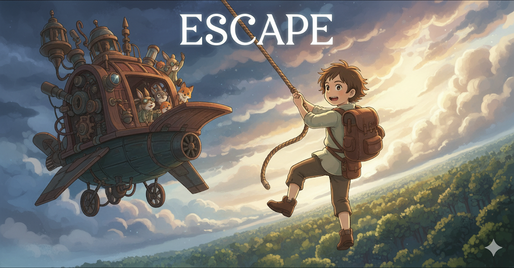 Day54 - escape , escape from , narrow escape , escape into , escape notice , escape artist , make one’s escape , escape route , escape reality